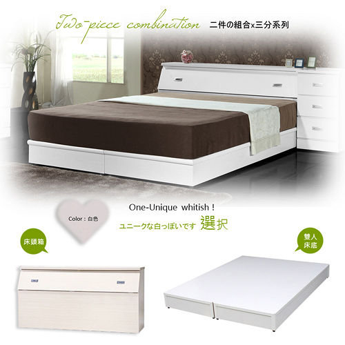 【Maslow-房東精選】雙人床頭箱+耐重6分床底(白色)